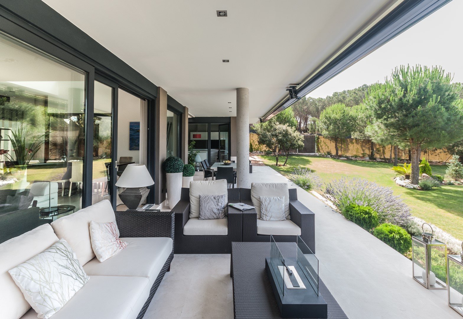 Cobra especial protagonismo el porche, como elemento de transición entre la vivienda y el jardín, buscando que sea el lugar perfecto de estancia en los meses de verano.