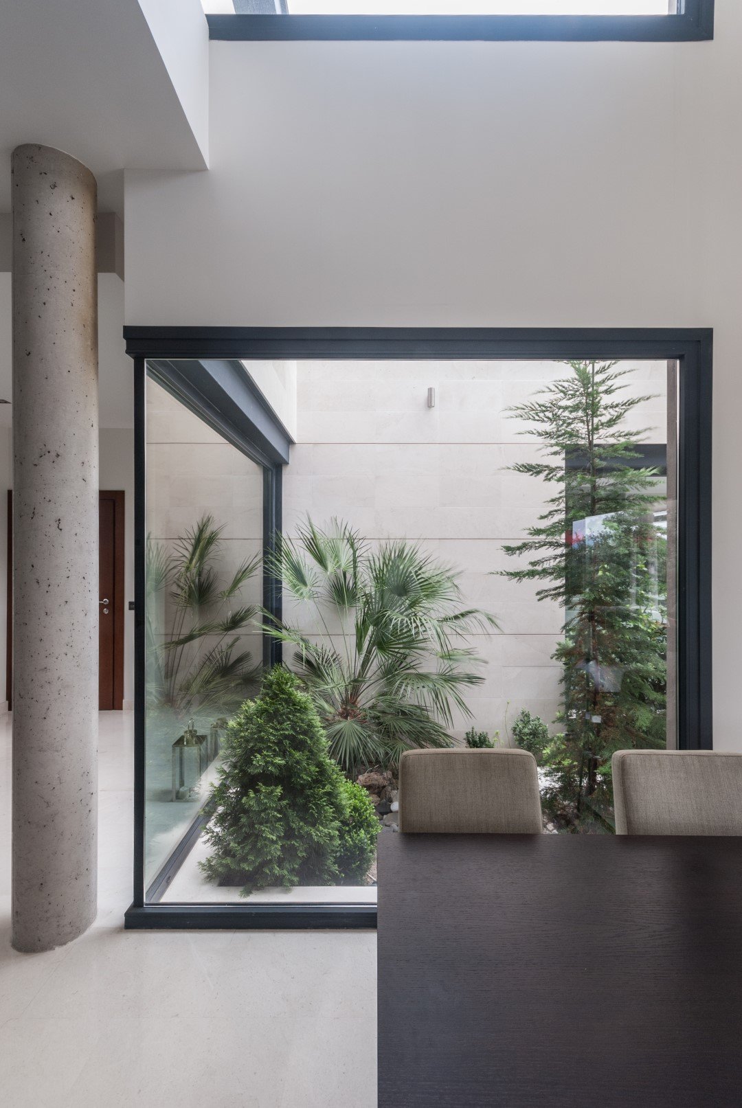 Se trata de una moderna vivienda que se abre al sur, al jardín y al paisaje. Se organiza alrededor de un patio central que es el corazón de la casa y que permite introducir el jardín y la vegetación en el interior.